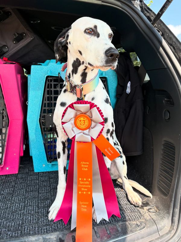 Moxie was our first show dog and is now retired from showing and breeding. She lives with us and still enjoys other sports and events.